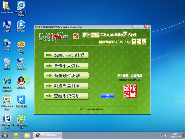 新萝卜家园 Ghost Win7 SP1 电脑城极速装机版 v2015.02