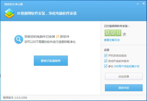 捆绑软件净化器是基于windows操作系统开发的一款捆绑软件拦截软件,为用户提供拦截软件安装时捆绑安装的功能。包含软件捆绑安装拦截、第三方软件卸载两大功能。大家经常在安装一些软件的时.....
