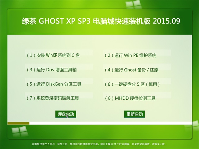 绿茶 GHOST XP SP3 电脑城快速装机版 V2015.09