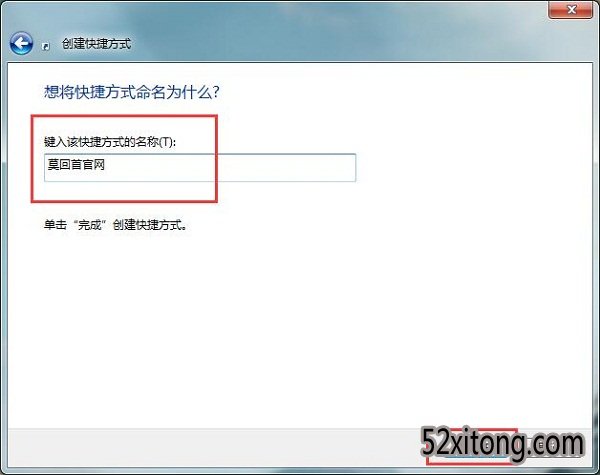 步骤三:下一步后给你的快捷方式创建一个名字,然后点击完成,如下图所示: