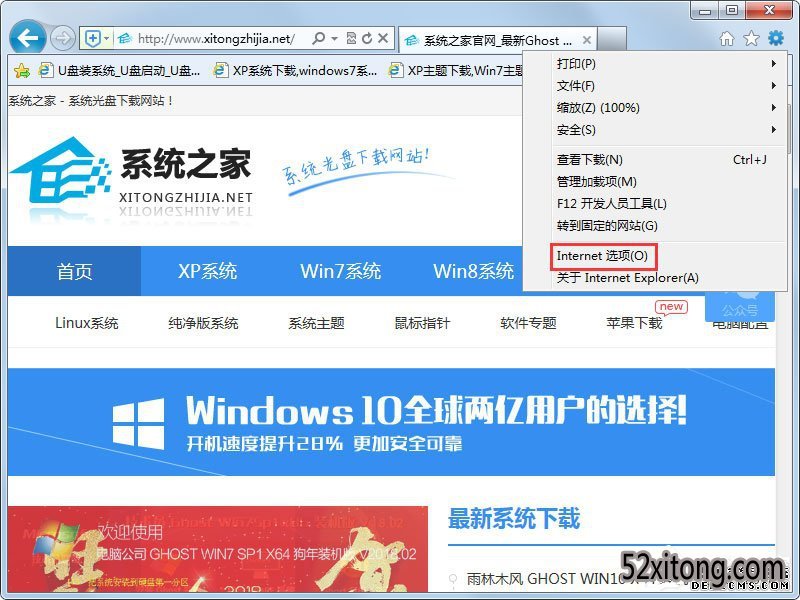 发布日期:2018-07-04 作者:Win10正式版官网 来源:www.52xitong.com近期有win10系统网友反映,每次点击IE浏览器的时候都会自动跳出某些网页,这让网友非常反感,想要阻止浏览器自动弹出网页,但又苦于不会。那么,win10系统IE浏览器自动弹出网页怎么处理呢?接下来,大家就一起往下看看win10系统IE浏览器自动弹出网页的处理办法。