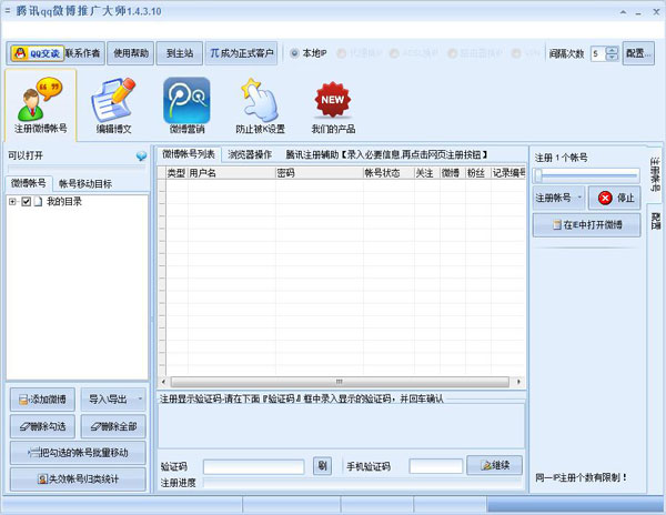 腾讯qq微博推广大师是一款全自动的腾讯qq微博营销工具,包含随机随机转发、固定转发、随机发送、@发送、评论、留言、关键词评论、收藏、加粉、取消粉丝、传图、传头像等等。 功能: 1.支持.....